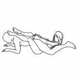 This is a tricky position that really is not for everyone. It conventionally requires the woman to be limber but it might be fun to reverse positions and see if you can both do it. The man lies down in a slight recline and the woman lowers herself on to him with one leg on the floor beside him and the other brought up to as near as her head as she can reach – like the kick in a dance of swan lake. She will need to steady the leg with her hand and this position will need to be taken slowly. The man should also be careful to support her and to not get carried away with the athleticism on display.