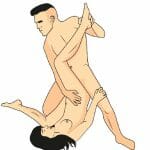 If the man has great upper body strength or the woman is light enough for him to carry, this standing position is great for couples who want to try a bit of outdoor sex or exhibitionism (i.e. having sex in front of a hotel window looking out over the city). The man stands upright as the woman wraps her arms around his upper body, then the man lifts her up by her heels. Her weight is supported by his arms as she uses his grip to thrust herself up and down on his penis. Be careful not to be standing too close to any items or furniture you might accidentally topple over when doing this challenging sex position!